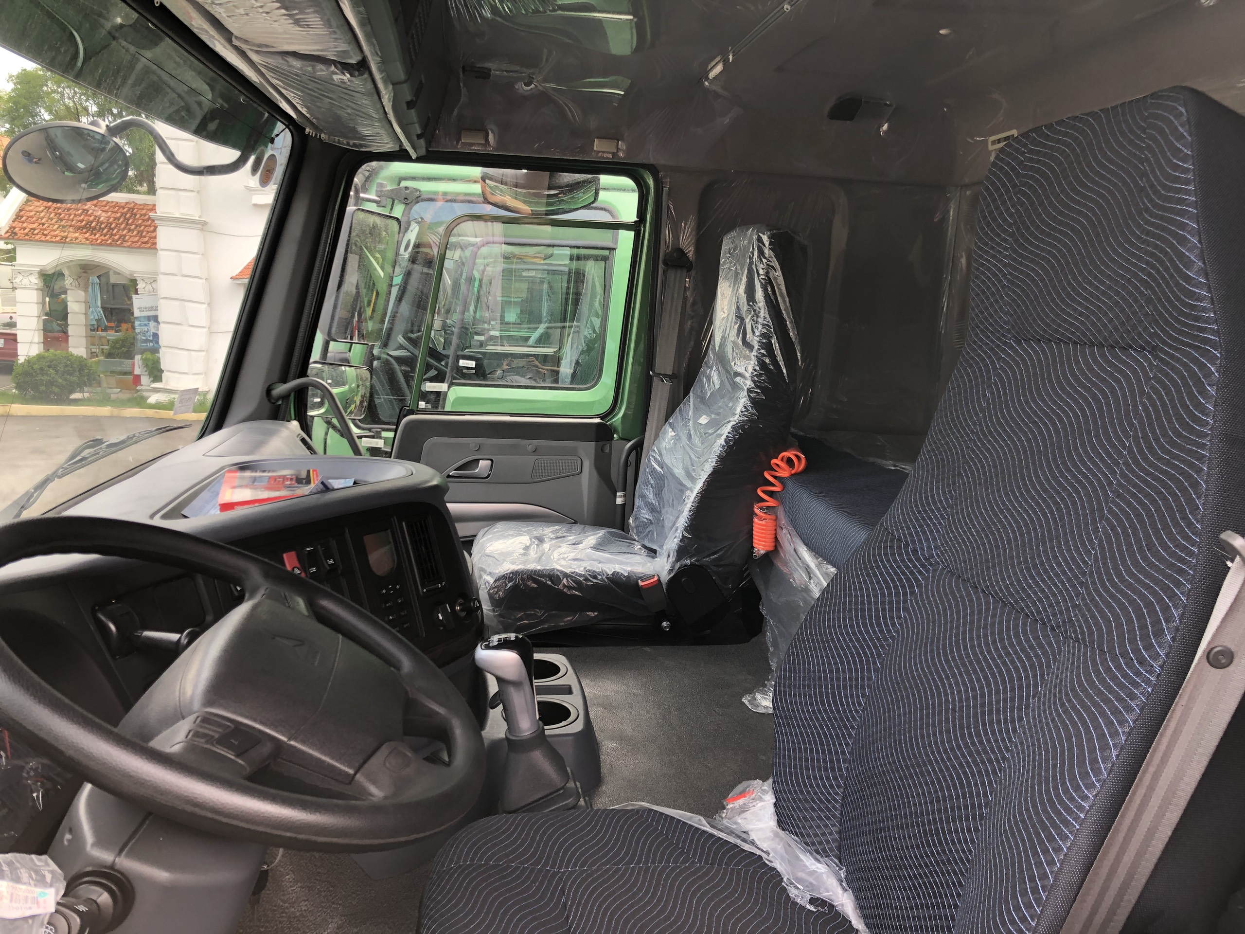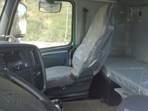 - Cabin A7-G nóc cao hai giường nằm, cao bin A7-P nóc thấp một giường nằm, có thể lật nghiêng 550 về phía trước bằng thủy lực ( tự động ), 2 cần gạt nước kính, lá chắn gió có gắn ăng ten cho radio, tấm che nắng, có trang bị radio, Mp3 stereo, cổng USB, dây đai an toàn, ghế hơi kính điện, hệ thống thông gió và tỏa nhiệt, cùng với 4 bộ giảm xóc và bộ giữ cân bằng nằm ngang, cabin bong hơi… |